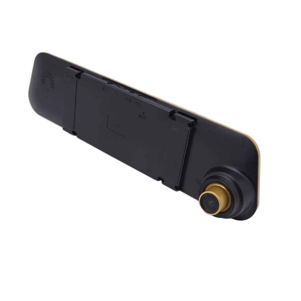 Автомобильный видеорегистратор с выносной камерой, которая позволяет снимать видео с разрешением 720Р или 1080Р. Для съемки в условиях низкой освещенности устройство оснащено четырьмя светодиодами подсветки. Угол обзора камеры – 170 градусов. В зеркало заднего вида встроен дисплей диагональю 4,3 дюйма с разрешением 640x480 точек. Видеорегистратор поддерживает установку карты памяти до 32 Гб. Питается прибор от бортовой сети автомобиля.