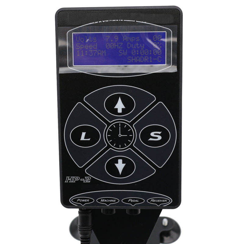 Блок питания для тату машинки HP-2 Hurricane Power используется для подачи питания на устройство. Татуировочное оборудование выполнено из прочного пластика черного матового цвета. На лицевой панели находится цифровой экран с подсветкой, на который выводится подаваемое на машинку ток и напряжение, а также нагрузка, скорость. Настройки выставляются при помощи кнопок на корпусе. Доступно 2 режима работы, регулировка частоты прокола, изменение мощности. К блоку питания можно подключить педаль, с помощью которой можно управлять машинкой. Есть энергонезависимая память, в которой сохраняются ключи и настройки для 4 машинок. Поддерживается таймер для контроля рабочего процесса.
