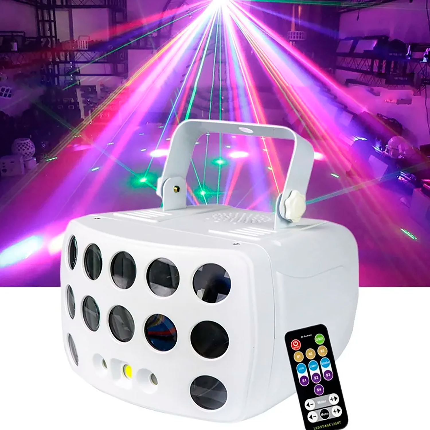 - Цвета подсветкиRGBW + красный, зеленый лазер + белый.