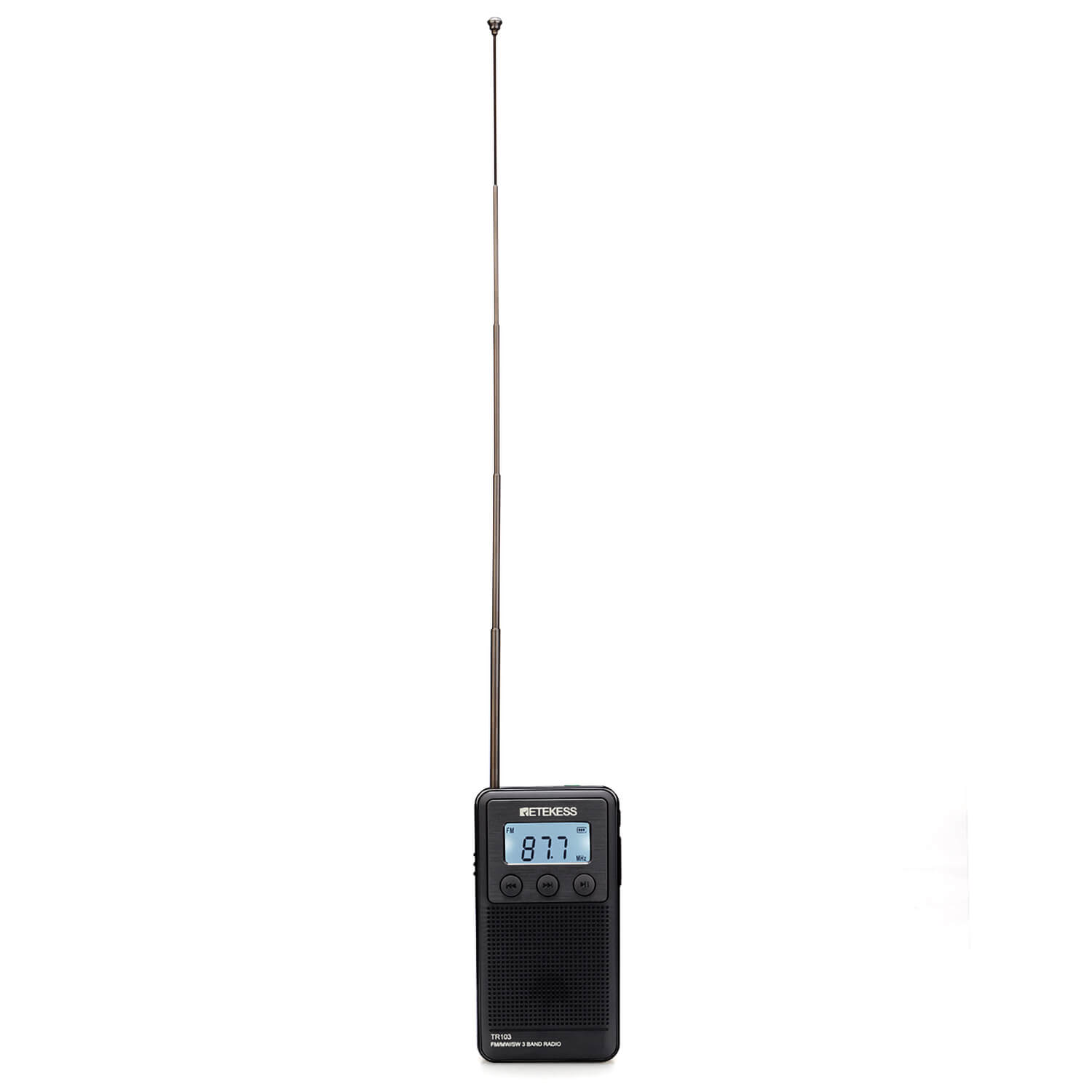 Черный TR103 FM/MW/SW Pocket Radio с разъемом для карты имеет длину антенны в 25 см и выходную мощность 3 Вт. Этот радиоприемник от Retekess идеально подойдет для прослушивания музыки и приема радиостанций в любой обстановке. В комплект также входят кабель для зарядки через USB и руководство пользователя.