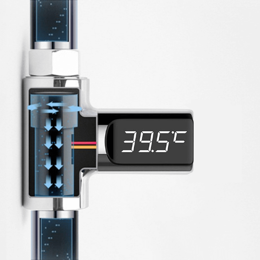 Проточный термометр для душа Filloиспользуется для точного выставления температуры воды. Термометр для душа произведен из АБС пластика и поликарбоната, а внешняя поверхность обработана матовым хромом. Значения температуры выводятся на жидкокристаллический цифровой дисплей, которому не страшна вода и который можно крутить на 360 градусов. Проточный термометр для душа Fillo измеряет воду в диапазоне температур от 5 до 85 градусов с минимальной погрешностью. Проточный термометр легко установить самостоятельно – достаточно прикрутить его на душ при помощи резьбового соединения.