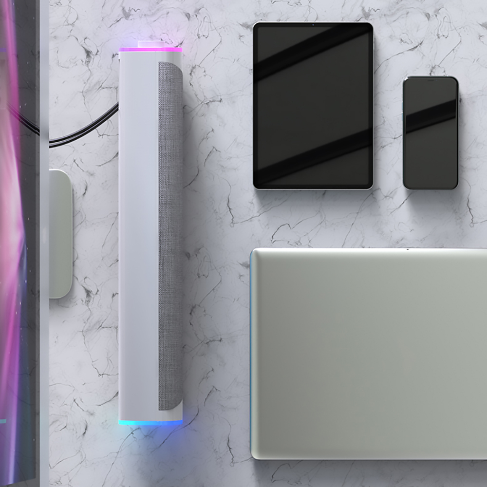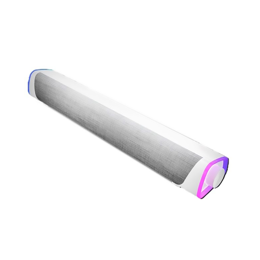 Беспроводная колонка удобна тем, что может свободно устанавливаться и работать в любом месте на расстоянии до 10 метров от источника сигнала (персонального компьютера, ноутбука, смартфона), с которым она устанавливает связь через Bluetooth. Благодаря этому, например, любимая музыкальная композиция или подкаст можно комфортно прослушивать как за рабочим столом, так и в кресле, на диване. Подобные режимы использования Саундбар с блютуз обеспечивает с легкостью, поскольку имеет малый вес (700 грамм), выходную акустическую мощность 6 Вт, а выглядит стильно и ультрасовременно.