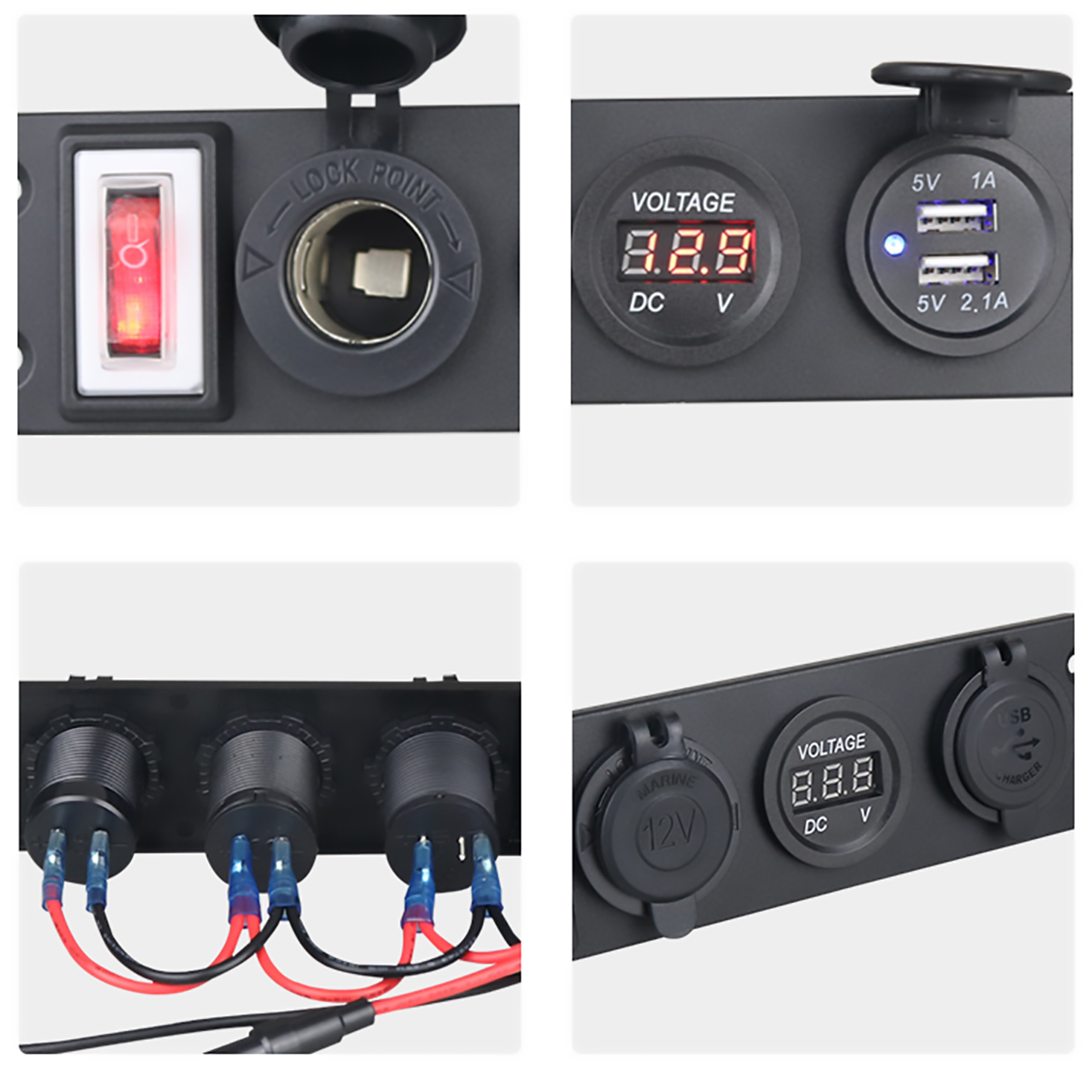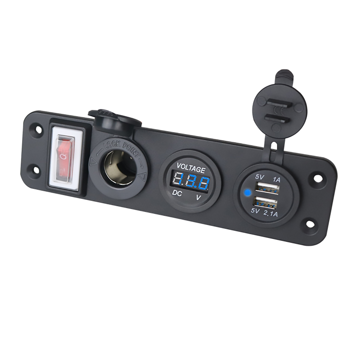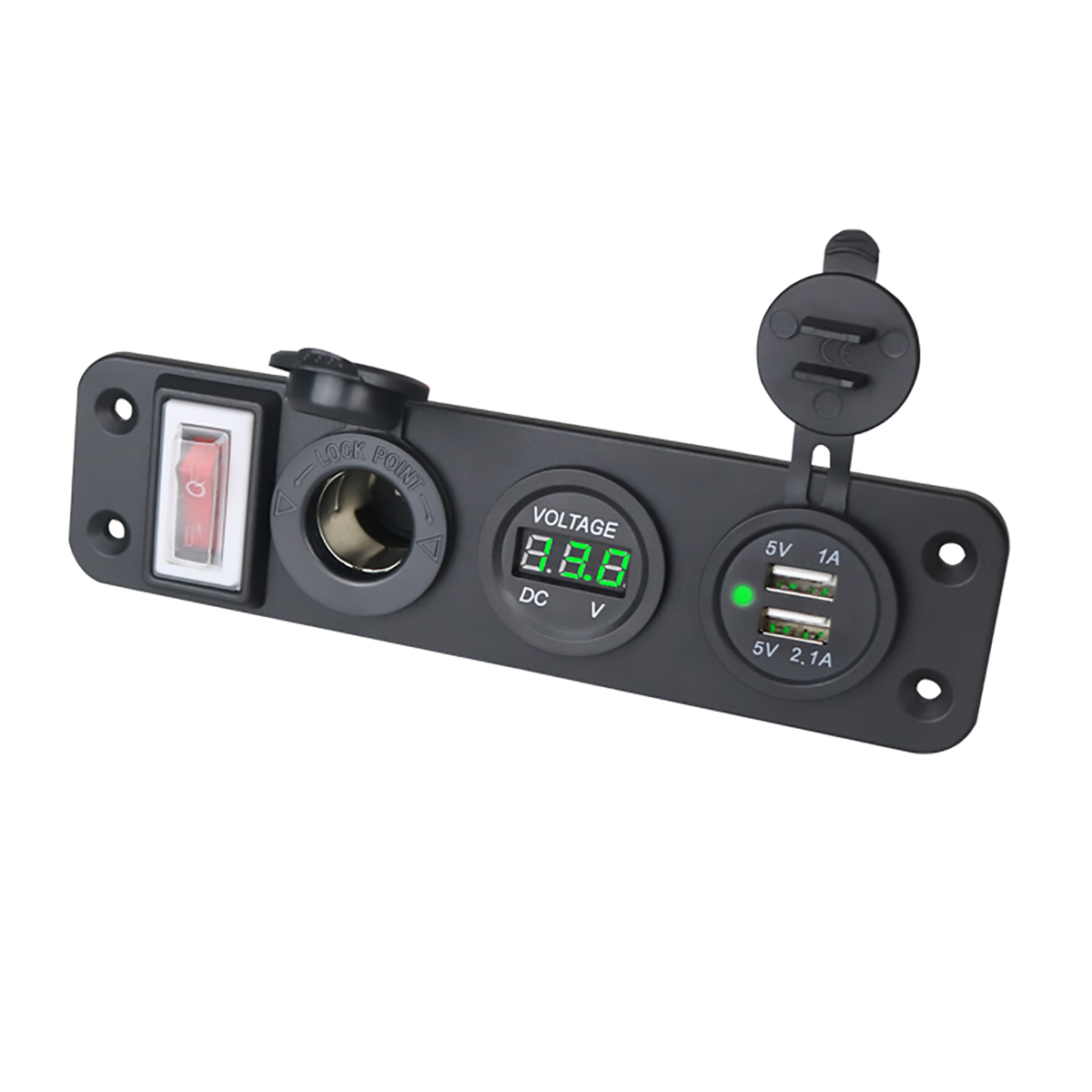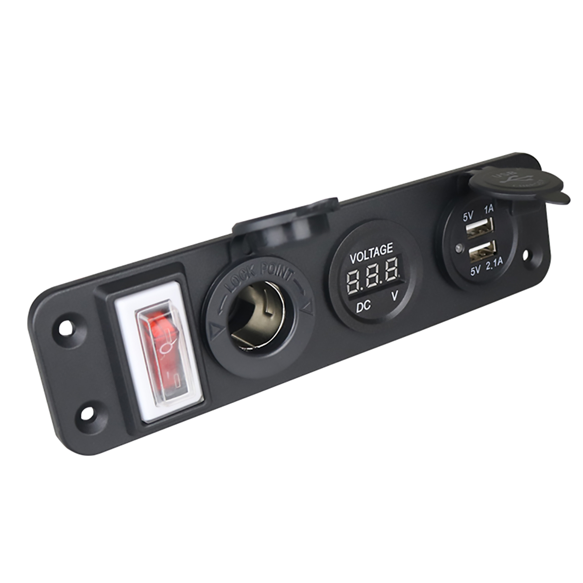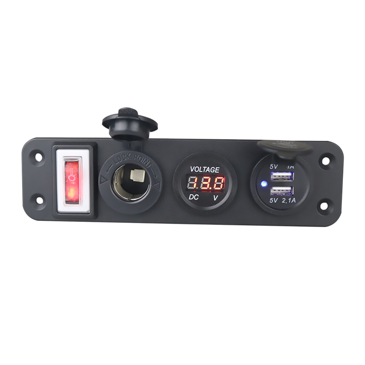 Панель розеток в автомобиль Anker с вольтметром, USB, прикуривателем предназначена для подключения различных устройств к бортовой панели. Сетевой фильтр для авто представляет собой переходник с USB разъемами, прикуривателем, цифровым дисплеем, на который выводится напряжение, а также кнопкой включения-выключения. Авто тройник легко устанавливается в бортовую панель при помощи винтов. Все необходимые крепежи идут в комплекте. Разветвитель прикуривателя защищен от влаги и пыли по максимальному стандарту IP66. Розетка прикуривателя выполнена из прочного АБС пластика. Разветвитель гнезда прикуривателя совместим с большинством моделей автомобилей.