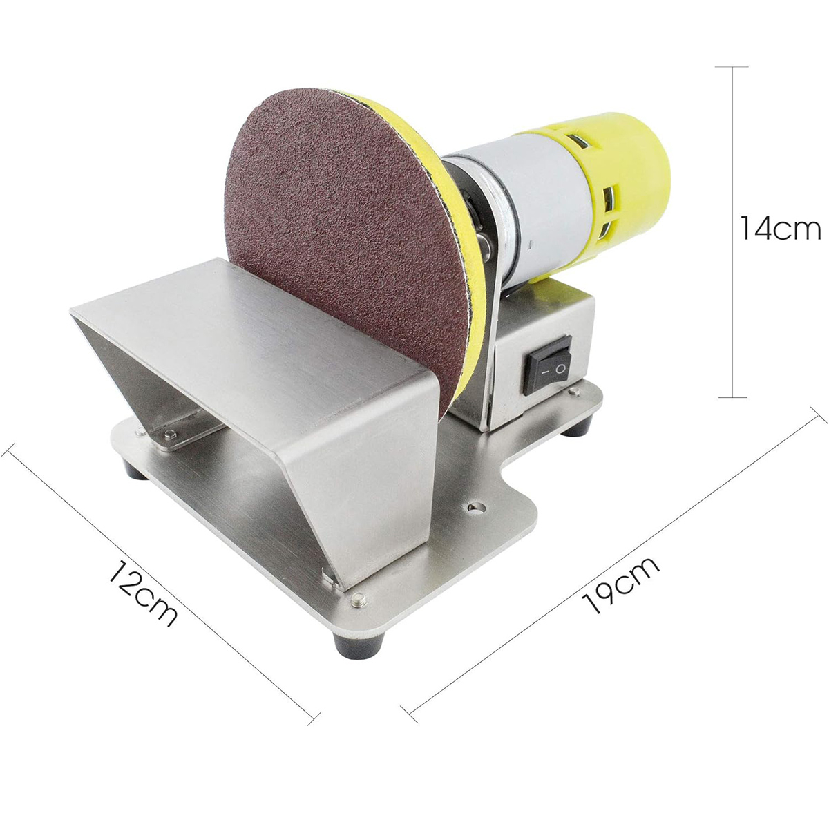 Размер шлифовального диска составляет 7,5 см, обеспечивая точное и эффективное шлифование. Компактный размер станка (19х14х12 см) делает его идеальным для использования как в домашних, так и в профессиональных условиях.