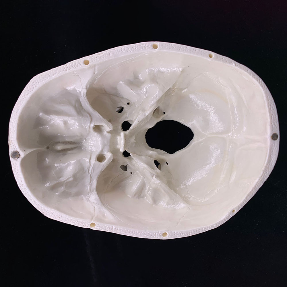 - Особенностиверхняя часть (свод) черепа на защелках, можно снять, череп внутри полый, показаны все анатомические швы и отверстия