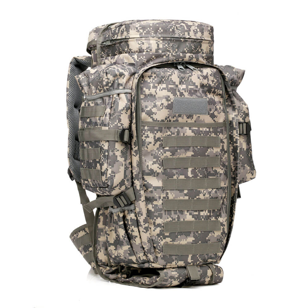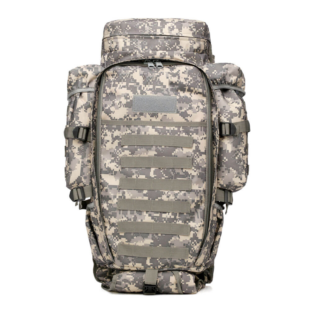Рюкзак-трансформер тактический Krok Hunt 70 L с чехлом для ружья Cami grey используется для охоты, туризма, походов, альпинизма, военной деятельности. Сумка-рюкзак оснащена основным объемным отделением, вмещающим 70 литров, а также множеством карманов разных размеров на молнии или без нее. Внизу есть специальный чехол для оружия или удилищ, который можно снять с липучки, когда он потребуется. Армейский рюкзак оснащен широкими лямками, благодаря которым нагрузка распределяется равномерно и не давит на спину. Военный рюкзак с подсумками произведен из водонепроницаемого и устойчивого к ветру нейлона высокой плотности.